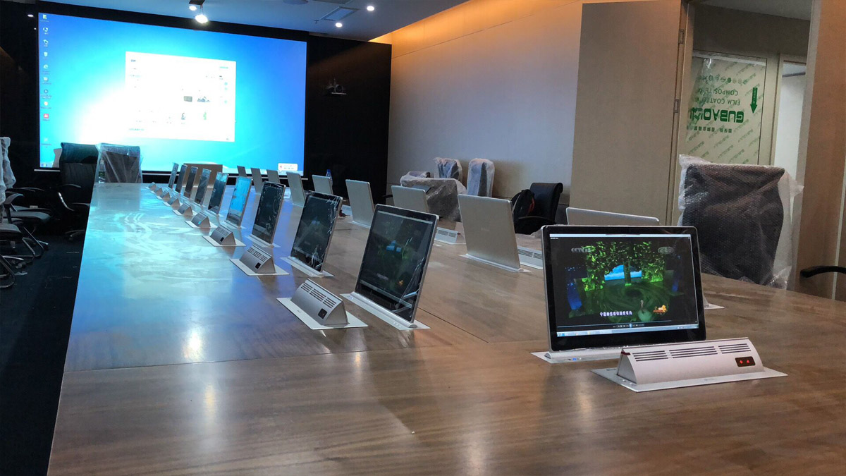 華韻無(wú)紙化會(huì)議系統(tǒng)基于移動(dòng)互聯(lián)網(wǎng)的無(wú)紙化會(huì)議交互系統(tǒng)、現(xiàn)代通訊技術(shù)、音頻技術(shù)、視頻技術(shù)、軟件技術(shù),通過(guò)文件的電子交換實(shí)現(xiàn)當(dāng)今會(huì)議的無(wú)紙化。其特征是:文件傳輸網(wǎng)絡(luò)化,文件顯示電子化,文件編輯智能化,文件輸入輸出可控化。核心功能主要是實(shí)現(xiàn)會(huì)議簽到、文件分發(fā)、文件上傳、文件同步演示、投票表決等功能。在局域網(wǎng)內(nèi)建立的會(huì)議交互場(chǎng)景應(yīng)用,實(shí)現(xiàn)文件分發(fā)、會(huì)議簽到、投票表決、呼叫服務(wù)功能。技術(shù)性主要利用會(huì)議傳輸要求的保密性,文件需要加密,轉(zhuǎn)換成為自定義的格式瀏覽,防止文件泄露。文件同步技術(shù)主要依靠觸屏軌跡跟蹤技術(shù)和觸屏軌跡仿真模擬技術(shù)實(shí)現(xiàn),達(dá)到流量控制的目的。